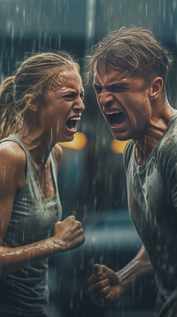 Angry young woman in the rain