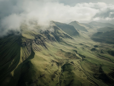 The towering cliffs of Ben Nevis in Scotland, with clear space for your message in the rugged terrain