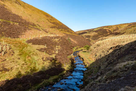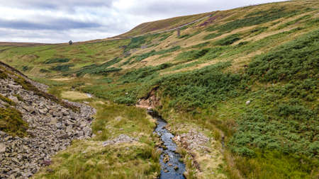 Little stream in unfarmed land on a moody day in a Derbyshire, UK.