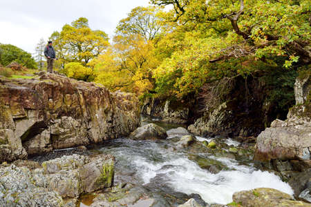 Scenic view of Watendlath Beck or river in Lake District National Park, Cumbria, England.