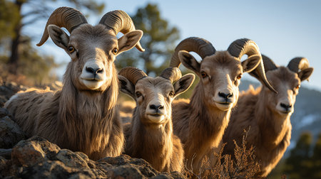 A group of Bighorn Sheep (Ovis canadensis) climbing the steep cliffs of Colorado's Rocky Mountain National Park, their curled horns and sure-footed agility a marvel of nature.