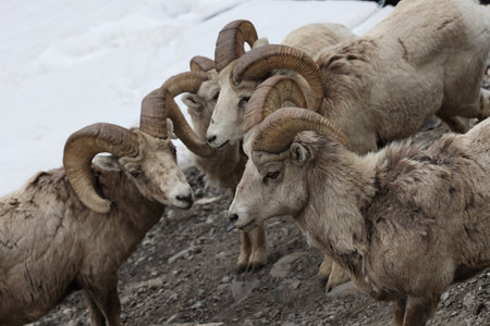 Bighorn Sheep in Winter Landscape. North American Bighorn Sheep.