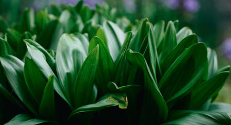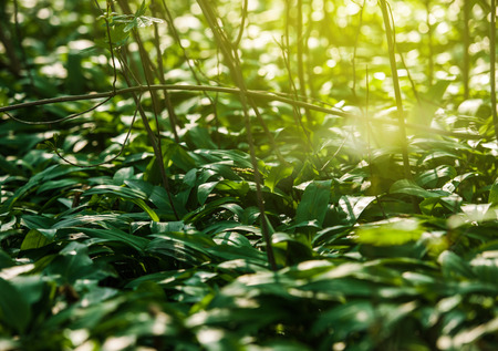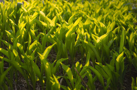 Ramsons leaves, wild garlic leaves in forest