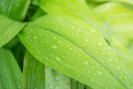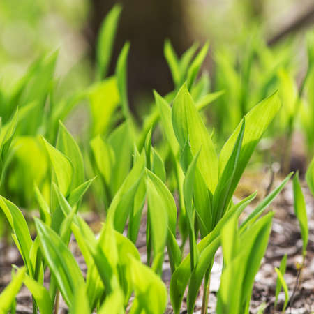 Green leaves of lilies of the valley in spring