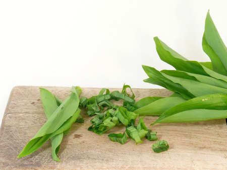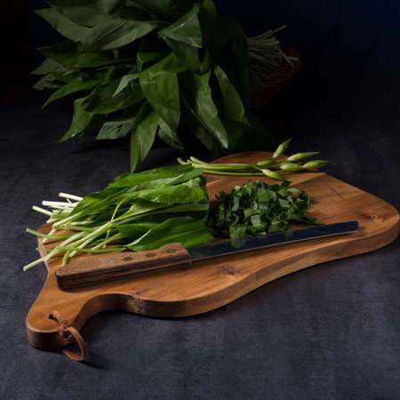 Ramson or wild garlic on a cutting board on the table