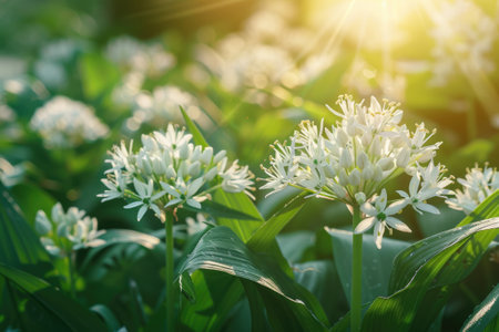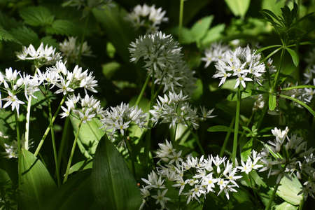 Allium ursinum bear 's garlic in bloom, sunlight