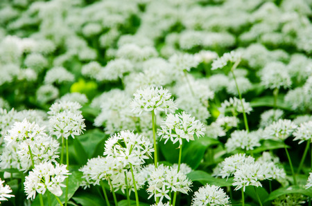 Wild garlic blooming in the forest