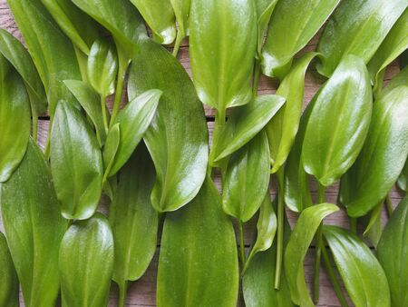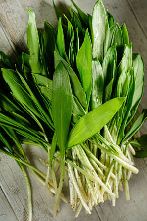 Fresh wild garlic, ramson leaves. Spring seasonal food.