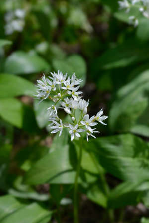 Wild garlic (Allium ursinum) plant blooming in a garden