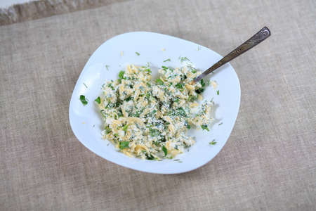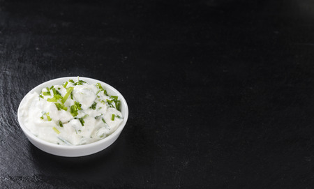 Bowl with fresh made Herb Curd (detailed close-up shot)
