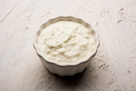 Plain curd or yogurt or Dahi in Hindi, served in a bowl over moody background. Selective focus