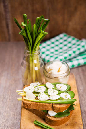 sandwich with mozzarella,ramson and tomatoes in studio