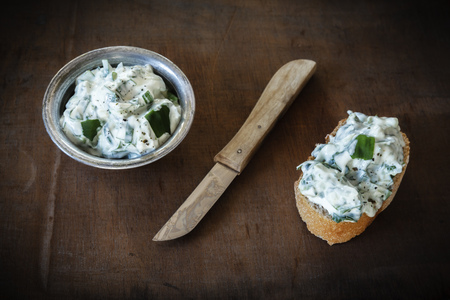 a delicious fresh bread with herb cream for the breakfast