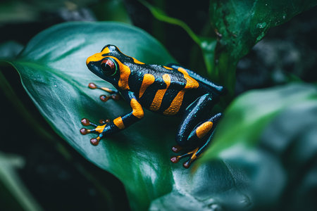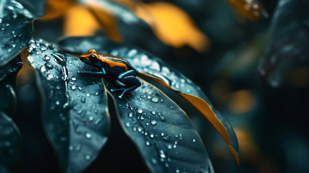 Vibrant Poison Dart Frogs on Dewy Jungle Leaves - Nature Photography for Wildlife Enthusiasts