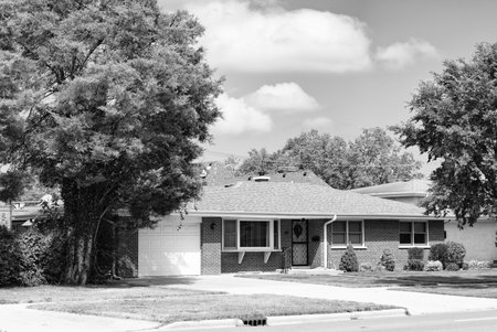 Neighborhood architecture. Property in neighborhood. Residential property house. Residence architecture. Suburban neighborhood. Suburban house architecture. Private family house. Residential privacy