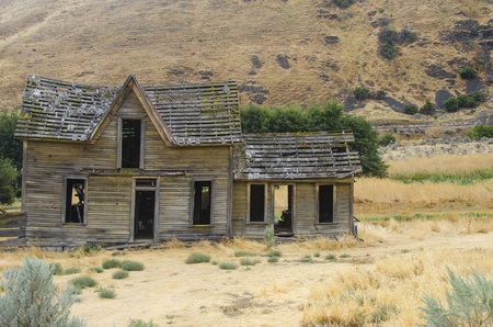 Old abandoned house in dry arid landscape