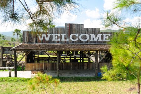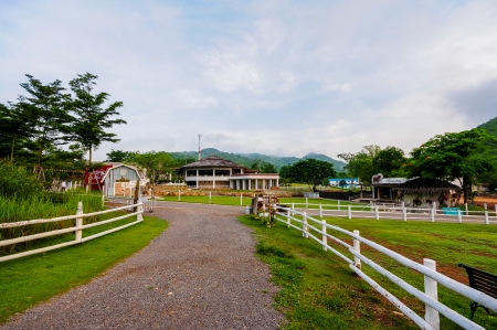 Shabby shacks from a ranch with wooden fence on lowland covered by dry bushes and trees near Cambara do Sul. A small country town in southern Brazil with amazing natural tourist attractions.