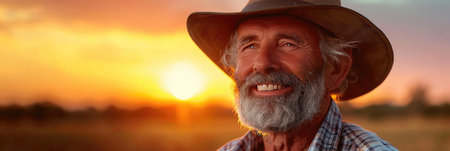 Joyful Farmer Wearing a Hat at Sunset