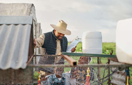 full body of farmer posing on white background on left side , Concept for business success