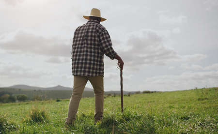 Life on a farm, where less is best. Rearview shot of a man working on a farm.