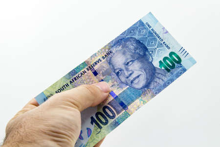 A close up of a pile of two hundred, one hundred and fifty rand sound african notes all spread out in a pile