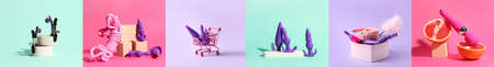 Contemporary art collage. Beautiful young. Copy space for text, ad. Flyer. Modern artwork.