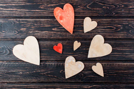 Love concept for mother's day and valentine's day. Happy Valentine's day hearts on wooden background.