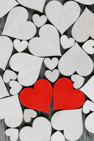 love, lots of hearts made of wood, design for a card, romantic background