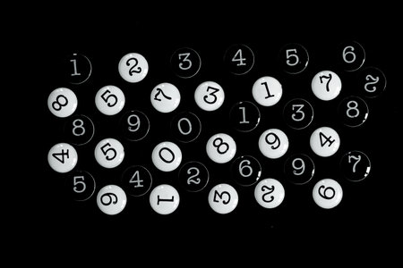 A solid background of numbers on the plastic buttons of an outdated calculator. Texture of numbers. Numerology and numbers. Abstract background.