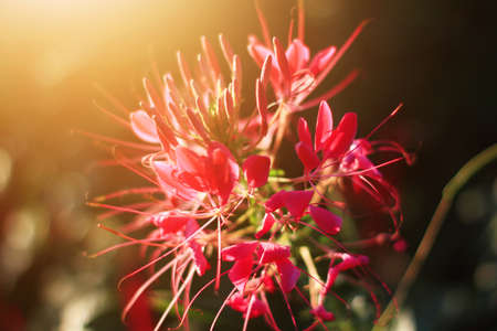 Beautiful blooming pink Cleome Spinosa Linn. or Spider flowers field in natural sunlight.