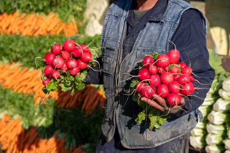Handful of organic fresh agricultural radish