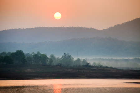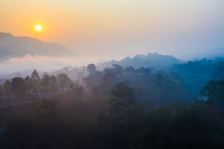 Sunrise with mist on mountain in UMPANG,THAILAND