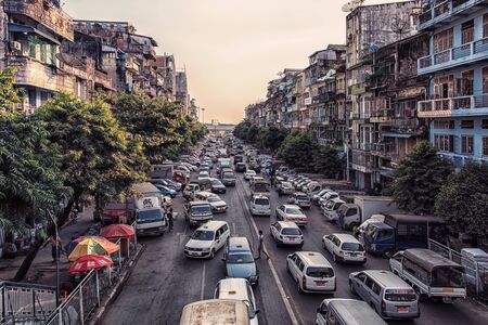 YANGON, MYANMAR - MAY 18, 2018 : Traffic jam in Yangon, Myanmar.
