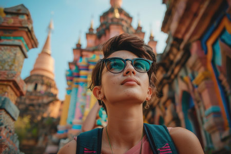 Young Asian tourist man in the streets outdoors