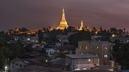Golden Shwedagon pagoda downtown view at sunset, Yangon, Myanmar
