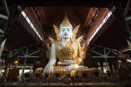 huge buddha image at Nga Htat Gyi pagoda in Yangon, Myanmar