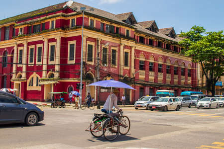 YANGON, MYANMAR - MAY 18, 2018 : Downtown area of Yangon, Myanmar.