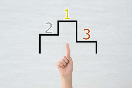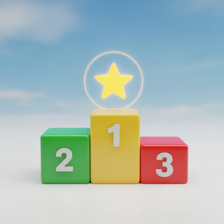 A vibrant image showcasing a first place trophy with a golden star atop three colorful blocks, each marked with the numbers one, two, and three.