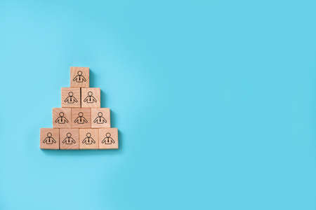 Human resources management and recruitment business build team concept. Wooden cube block on top with icon