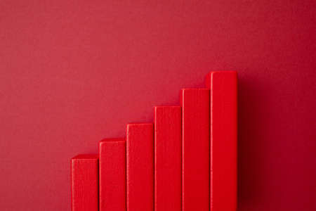 heart on wooden cubes arranged in bar graph shape on blue background, health concept
