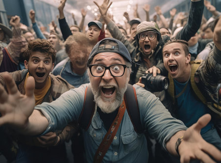 A crowd of screaming children. This could be due to excitement, fear, or any other strong emotion. AI Generative