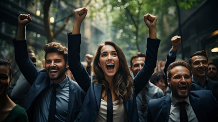 Triumphant Diverse Business Team Celebrating Success in the City