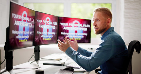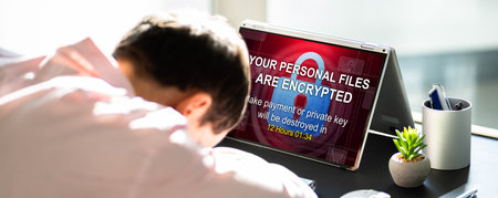 Ransomware Malware Attack. Business Computer Hacked. Files Encrypted