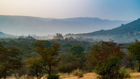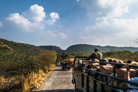 Inside view of RANTHAMBORE National Park, India Asia. Extreme danger location of forest for adventure tour as per Tourist group on jungle Safari. It is protected wildlife sanctuary in northern India.