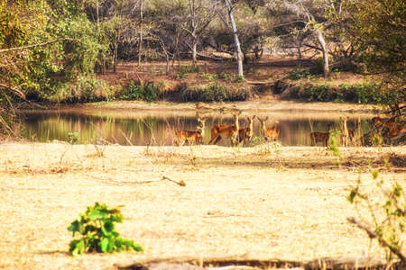 India, Ranthambore: Deers around the lake at the end of the afternoon