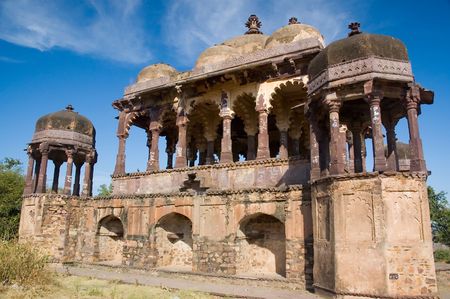 ranthambore monuments and padam lake with landscape of ranthambore national park, rajasthan, india