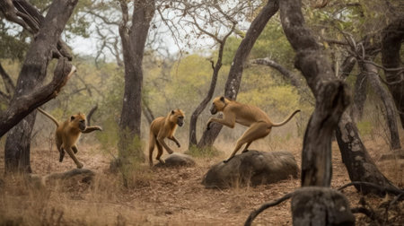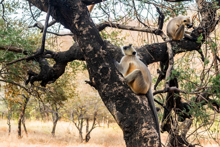 leader of langurs calmly reacts to actions of a pack of monkeys. India
