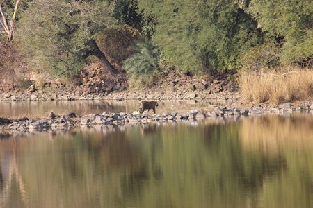 Beautiful landscape from Ranthambore, with Tiger in the middle, heading to its habitat