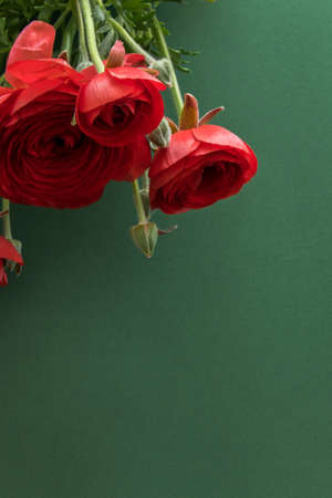 Set with beautiful spring ranunculus Flowers on Background. Banner design. Copy space