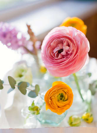 Close up image of colorful bouquet of colorful buttercup flowers